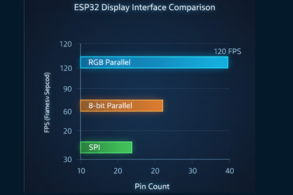 | 8-bit Parallel | 10-12 Pins | High | Medium screens, 2D gaming | |